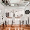 Közepén az alagsorban lehet találni a fürdőszobákat és a csatlakozó lépcsőket is. A fürdőszobákba ontják a természetes fényt tetőablakokon keresztül.