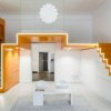 Ez a szinte egyterűvé tett lakás egy középkorú hölgy kikapcsolódásra, pihenésre berendezett “csigaháza”, ahová belvárosi otthonából hétvégéken kiruccan. Megbízóm állandó lakását is én terveztem, tehát ismertem igényeit a kevésbé megszokott megoldások iránt.